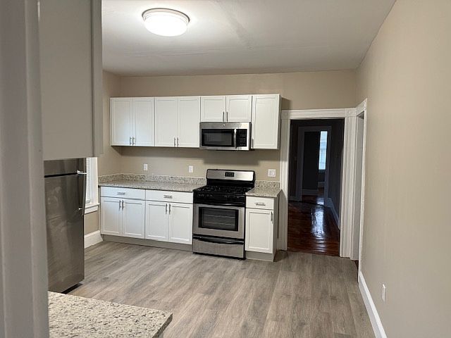 Experience the comfort of this spacious, completely remodeled 3-bedroom, 1-bath apartment in a highly sought-after Beverly neighborhood. The large, modern kitchen is equipped with stainless steel appliances including a gas stove, dishwasher, microwave, and refrigerator making it perfect for home chefs. Enjoy an oversized bathroom and bright, open living areas that fill with natural light. Water is included in the rent for added convenience. Laundry facilities and additional storage are available in the basement. One off-street parking space is included. Step outside to a small backyard with a private deck, ideal for relaxing or entertaining. This fantastic location is just blocks from the train and only half a block from the shops, dining, and amenities of Rantoul Street. Available October 1st don't miss this opportunity! Upfront costs typically include the first and last month's rent and a security deposit; please ask for details on alternative payment plans. Water is included in the rent for added convenience. Laundry facilities and additional storage are available in the basement. One off-street parking space is included. 12 month lease is required