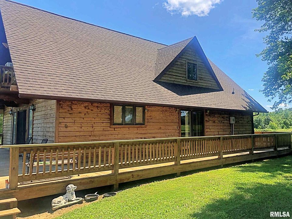 Beautiful wood-sided home, situated on a secluded 4.743 surveyed acres. Enjoy the beautiful views of the surrounding Shawnee National Forest from the wrap-around porch or the second-floor balcony. Built in 1995, this 1.5 story home features 2000+ sq ft, open floorplan, spacious kitchen with lots of cabinet and counter space, three bedrooms, and two baths. Quality built home with 6'' walls and cherry wood kitchen cabinets & staircase. Updates include new roof in 2018 and new well pump/tank in 2019. Property also includes a large detached garage and stocked pond. Great location, in the middle of the Shawnee National Forest, only a few miles from Garden of the Gods and with quick access to the Ohio River.