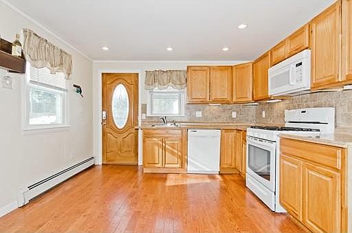 Your home search is over! Located minutes from the heart of Townsend sits this one of a kind tri-level split. This adorable well-kept 3 Bedroom home features over 1,500 sq ft of living space. Enter into a bright and open floor plan through the kitchen, which opens to the Dining Area and LR. Beautiful Hardwood floors are seen throughout most of the home. LR is accented w/ a Large Picture Window & Fireplace. Walk up to 3 Bedrooms & 1 Full Bath all on one level. Full Bath offers beautiful ceramic tile. Step down into the newly Finished Basement / Family Room with a Laundry Room offering exterior access through the sliding glass door. Overhang off the back of the home provides covered storage for your outside needs. Partially Fenced Backyard with Storage Shed are a great bonus! Property features New Vinyl Siding, Windows, Roof, Boiler, and Heat Pump. This home offers an amazing base to all your home needs with room to make it yours. Showings start SATURDAY 3/31 at 11:00am