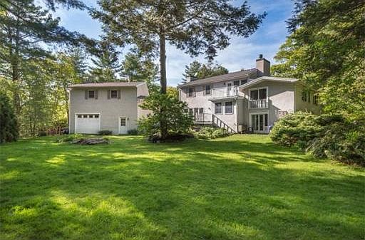 Wonderful stucco home located within walking distance to town privately set on over an acre of land. Property is beautifully landscaped with outcroppings of stone, perennial plantings, lovely shrubs and trees. The home is nicely elevated with a fireplaced living room, dining room, kitchen and bar, deck and patio on level one. Steps down to a playroom with fireplace and laundry/office room. Steps up to 2 good size bedrooms and 2 baths, one ensuite. Steps up again to the large master suite with deck, Jacuzzi bath and shower and 2 walk-in closets. There is a large foyer as you enter the front door which can take you to the mudroom and the attached 2 car garage. There is also a separate staircase to a wonderful large au pair suite or private office space. A great family home and a retreat close to the village of Manchester.