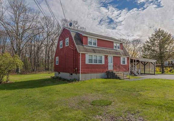 As the saying goes....location, location, location & this is it! Excellent opportunity for home ownership only minutes from the Burlington line on over 1/2 level acre! 3/4 shed gambrel complete w/Farmer's Porch! Wonderful open concept floor plan incl eat-in kitchen, dining room, office den adjacent to 3-season sun room & front-back living room on main level; 2nd floor incl front-back master bedrm & 2 additional bedrms...tiled full baths too! Expansive driveway & 2-car carport offers protection from weather elements when parking & some storage! Home does need some updating, newer bath on main level & some interior finishes are in process, reflected in terrific price point....a short walk or drive to the Boys & Girls Club, recreation fields as well as major Rts. 3, 495 & 128! 13-Mo. Home Warranty included!