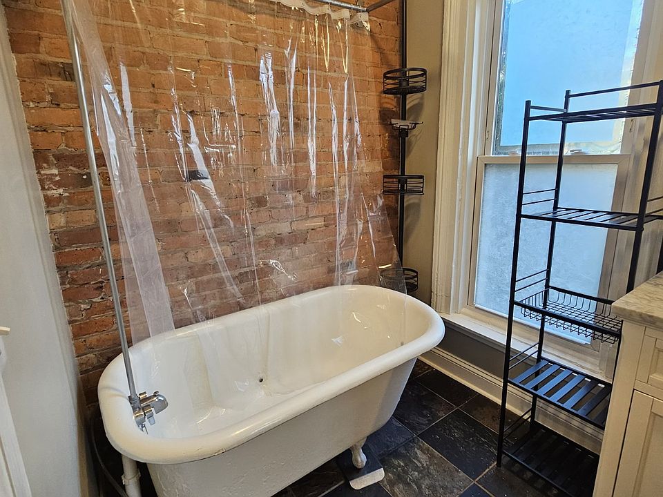 Super cute Brownstone row house with Front and back private entry. Modern kitchen with stainless appliances and ample Cabnet space. Gleaming hardwoods marble vanities, 12" ceilings accent this charming Victorian home. Three car iff street parking, back deck, in unit laundry. 660+ credit and three times rent household income thresholds with good references. Right in the heart of Cornhill off round about. Minutes from Riverwalk.