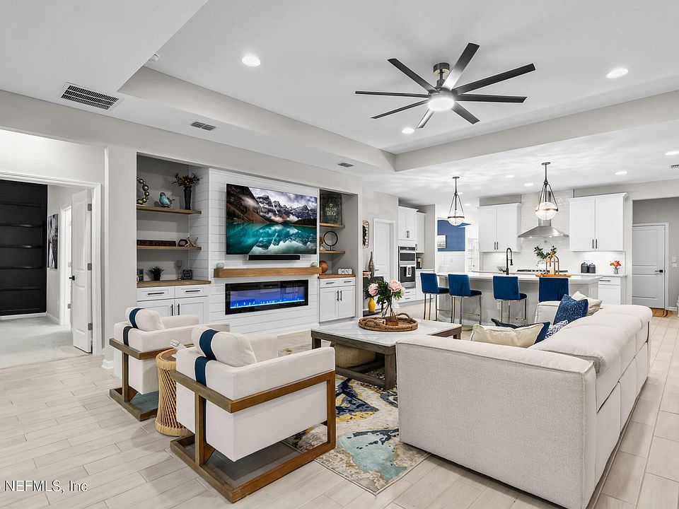 The luxurious owner's suite features a spa-like bathroom with dual vanities, soaking tub, and an oversized walk-in shower. Triple sliding glass doors open to a covered lanai and oversized backyard backing to a private preserve—ideal for relaxation or a future pool. Additional upgrades include smart home technology, tankless gas water heater, and whole-home water softener. Located in a natural gas community and zoned for top-rated St. Johns County schools. A rare opportunity for space, style, and comfort in one of the area's premier neighborhood!