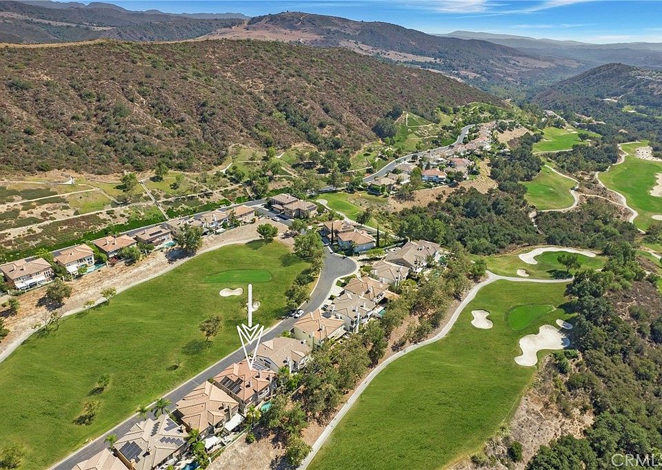 Be the “DESTINATION HOME” for family & friends while enjoying California Living at its finest in this Resort Style entertainers home. This home is located in the Prestigious Gated Community of Dove Canyon nestled against the Saddleback Mountains & perfectly positioned between 2 Fairways of the Private Jack Nicklaus Designed Golf Course. This stunning 5-Bedroom + Loft and 5 Bathroom home offers an open & airy floor plan embracing a blend of comfortable everyday living as well as the luxury of fabulous entertaining. Entering through the Double Doors to the Grand Foyer you are welcomed by the abundance of windows & French Doors that enhance the interior with warm sunshine all day. New Carpet, Marble Floors, Fresh Neutral Paint, Shutters, Ceiling Fans, Newer A/C, Furnace, Water Heater, Water Softener System & SOLAR are just a few of this homes upgrades. The high ceilings in the living & dining rooms are accented with a Fireplace, Custom Paint, Shutters & French Doors. The Gourmet Kitchen has a generous sized Breakfast Nook, beautiful Cherry Cabinets, Designer Tile, Center Island & ample counter space for creating your favorite culinary delights. The kitchen looks out to the F/R that has a Fireplace & French Door to the backyard. The Main Floor 5th bedroom has a walk in closet & is currently being used as a den complete with a cozy Fireplace & Custom Built-ins. The beautiful Sweeping Staircase leads to the Spacious Primary Bedroom with High Ceilings,Shutters, Ceiling Fan, Large Retreat area, Dual Sided Fireplace & Private Balcony with view of the golf course. The Primary Bathroom has Dual Sinks + a Vanity, Separate Glass Enclosed Shower, Oversized Jacuzzi Tub & Huge Walk-In Closet. There are 3 large secondary bedrooms each with their own bathrooms along with a Loft that is currently being used as an office with Custom Built ins. The Resort Style Backyard offers a sparkling Pool & Spa, New Built-in BBQ, Retractable Awnings, Lush Landscape and Views of the Golf Course. Enjoy life in the exclusive Dove Canyon Community featuring 24-hour Guard-Gated entry, private pool/spa, tennis & pickleball courts, sport court, playground & miles of nature trails for hiking and biking. There are also several membership opportunities at the Jack Nicklaus Signature Dove Canyon Golf Club for those golf enthusiasts. Low tax rates, easy access to shopping, restaurants, & award-winning schools. Don't miss your opportunity to live in this turnkey home & this fabulous community.