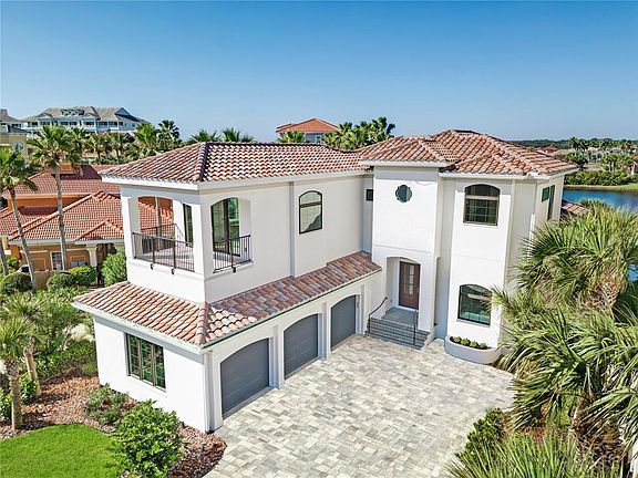 Indulge in unparalleled sophistication with this magnificent Blue Water masterpiece, situated in the prestigious Ocean Hammock community. Every element of this newly constructed home has been thoughtfully curated to seamlessly blend timeless elegance with modern functionality, offering an exceptional living experience like no other. This exceptional 4 bedroom, 4.5 bathroom and 3 Car Garage home is located right across from the beach access. Take a short stroll to the beach and enjoy a refreshing dip in the cool pool. At the heart of the home, the custom kitchen showcases hand-painted tile work, marble countertops, a Viking 48" gas stove, a convenient microwave drawer, and low-voltage lighting under cabinets for a warm, modern ambiance. The main living area boasts striking 24x48" tiles imported from Spain, adding a touch of European sophistication. The open floor plan of the first living is ideal for everyday life or hosting your family and friends. Also, conveniently on the first level boasts the primary suite with two walk-in closets. Italian hardwood flooring graces the primary suite and upstairs, complementing the marble tile accents that flow throughout the home. Step into the spa-like bathroom, complete with Toto Nexus toilets (all bathrooms feature automated Toto Nexus Toilets), a steam shower, and thoughtfully placed under lighting cabinets. Custom molding adds an air of refinement throughout the house, while the custom wood staircase and railing create a grand focal point. Designed for ease and organization, the home features custom built-in closets in all bedrooms, and even a dedicated dog wash station for your furry companions in the mud room. Upstairs showcases the other bedrooms with ensuites, one being a perfect option for an office or 4th bedroom with a balcony facing East ideal to feel the ocean breezes while the sun comes up. Outdoor living is equally impressive, with custom rear patio stairs and planters that blend style and practicality. From the back patio and balcony, you will be able to soak in the stunning sunset views while overlooking the lake. This home is truly a masterpiece of craftsmanship, offering a seamless blend of luxury and comfort in every corner. It's more than a home—it's an experience waiting for you. Living on Hammock Beach Circle comprises of a guarded community gate, community pool and beach access, and lawn maintenance all included in the HOA. You can also join the Hammock Beach Club for access to world-class amenities, pools, Golf Courses, restaurants and more! Expected completion in May.