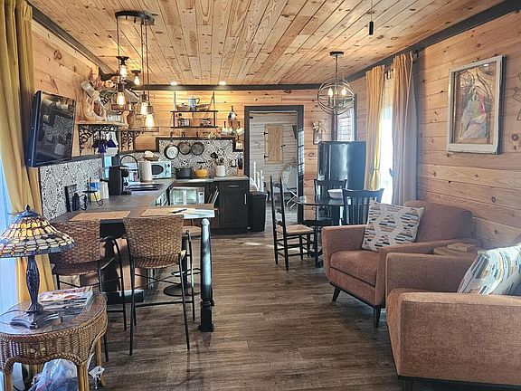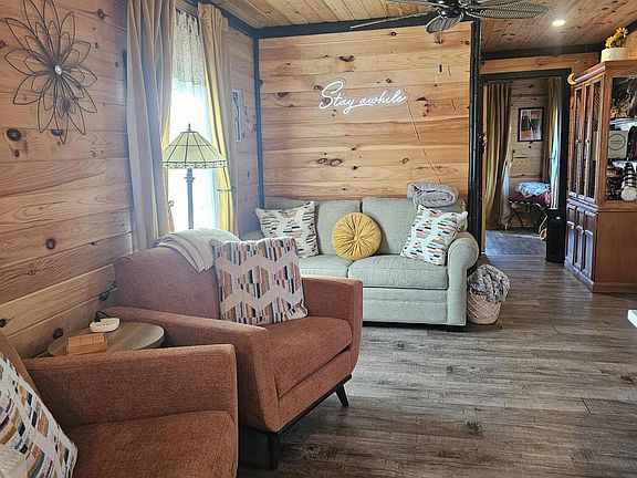 Corner lot just at the foot of Lookout Mtn. with gorgeous views of Lookout Mtn. to the west and ridges to the east. Two lots combined are just under an acre. This is not your normal mobile home. Escape inside to your own little cabin. So many updates and repairs were done about 3 years ago and it also has a profitable income history as an Airbnb. Everything you see remains with the property. All furniture, appliances, dishes, all decor and everything needed to continue the Airbnb or move right in with everything at your fingertips. Brand new sleeper sofa and 2 chairs in living room. Repairs include the following: New metal roof, new electrical, new plumbing, new vinyl windows, except one bedroom, new flooring and replaced some sub flooring, 2 decks, dishwasher, washer and dryer and very well insulated. Enjoy the large back yard with a large deck and fire pit. It is presently an active Airbnb and showings will need to be planned around visiting guests.