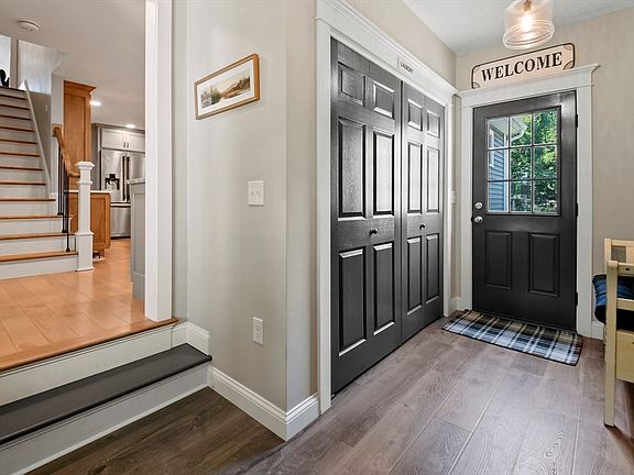 Better Than New! This completely renovated Cape style home boasts updates & high-end finishes throughout. As you enter, you're greeted by gleaming maple HW floors throughout. The formal DR features a cozy fireplace. A cabinet-packed kitchen is a chef's dream, showcasing all-new SS professional appliances, new custom cabinets & granite countertops w/ seating & open concept to the living room, which is adorned w/ a gas fireplace & cathedral ceiling. Down the hall, you'll find an updated full BA & 2 beds. The primary suite offers a walk-in closet & private BA featuring a granite countertop & slate flooring. The 2nd floor boasts a 3rd bedroom w/ a walk-in closet. A few updates include new electrical, plumbing, furnace, a 72-gallon water heater & central AC. The oversized two-car garage offers ample space for a workshop area & includes a 1/2 bath. An automatic generator panel in the basement, ensures you won't be left in the dark during power outages. OFFER DEADLINE Tue 7/23/23 @ 7pm.