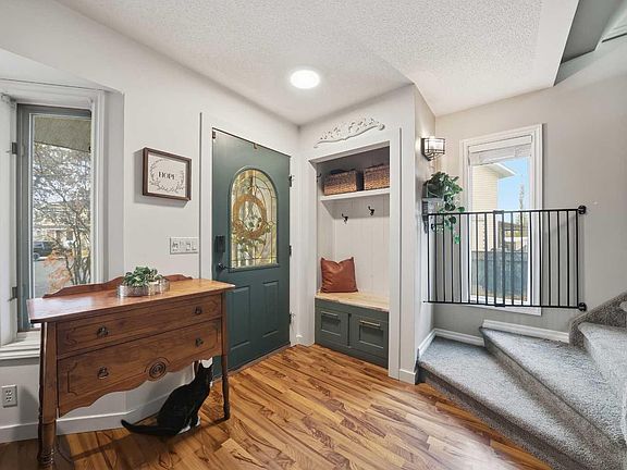 Make your home here on one of the largest mature pie lots on Kirsch Close—a truly family-friendly street. This spacious home offers three bedrooms and 2.5 bathrooms, making it ideal for young singles, a growing family, or those looking to upgrade from a rental or apartment. Step inside to an updated entry leading into a bright living room, featuring large bay windows and freshly painted walls. The south-facing kitchen is bathed in natural light, creating a cheerful atmosphere. It boasts a clean palette with new subway tile, white cupboards, under-cabinet and overhead lighting, and a newer stove and dishwasher. A convenient rear door provides access to a large, newly built 20 x 21 ft deck. The dining area also features a new accent wall and updated lighting. An updated two-piece bathroom on the main floor serves both guests and children. Enjoy easy maintenance with laminate flooring throughout the main and upper floors, complemented by bamboo-look vinyl flooring in the kitchen. Upstairs, you'll find an oversized primary bedroom with a full closet and a sunny bay window. There's also a roomy second bedroom and a beautiful full bathroom with a tub and newly tiled shower surround. The partially finished basement offers additional living space, including a family room, a third bedroom, and a new washer and dryer. There's a second newly refreshed full bathroom with a tub and tiled shower surround for guests and family. Outside, the mature trees and new fencing around the deck provide ample privacy in the expansive yard. There's also a double parking pad from the rear alley. This home's Kentwood location is incredibly convenient, offering proximity to schools, the YMCA, and the Dawe Recreation Center, which includes a pool, track, rink, and gym.