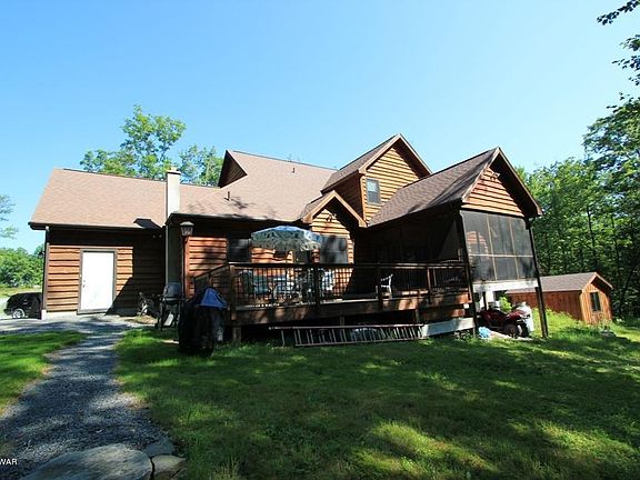 Wayne County, PA Home on 2+ Acres. This one of a kind home features 4 bedrooms, 4.5 baths, upscale kitchen with granite countertops, open floor plan, screened porch, deck with hot tub, kitchenette and family room in finished walkout lower level, attached 2 car garage, portable generator and more. Private location, yet close to town.