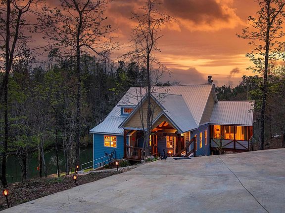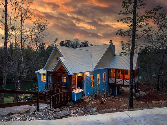 Escape to this secluded sanctuary nestled on over 2 acres of lush landscape with breathtaking lake views from nearly every room! Open kitchen, quartz countertops, farmhouse sink, large island, and stainless-steel appliances. Living room boasts a vaulted tongue and groove ceiling with fireplace & Fr. doors that lead to a game day screened in porch also with a fireplace. Luxurious owner's suite on the main level offering panoramic water views, a sitting area, his and hers vanities, a deep soaking tub and a custom tiled shower. Terrace level features two secondary bedrooms w/attached private baths, a spacious living room w/another wood-burning fireplace and wet bar. Fr. doors open to a covered deck w/porch swing perfect for enjoying the serene surroundings. Outdoor amenities incl. an outdoor shower, 331 ft of waterfrontage, two beach areas, a garden area and greenhouse. Well below appraised value! Unrestricted lot to build an additional home. Perc test available. Your dream home awaits!