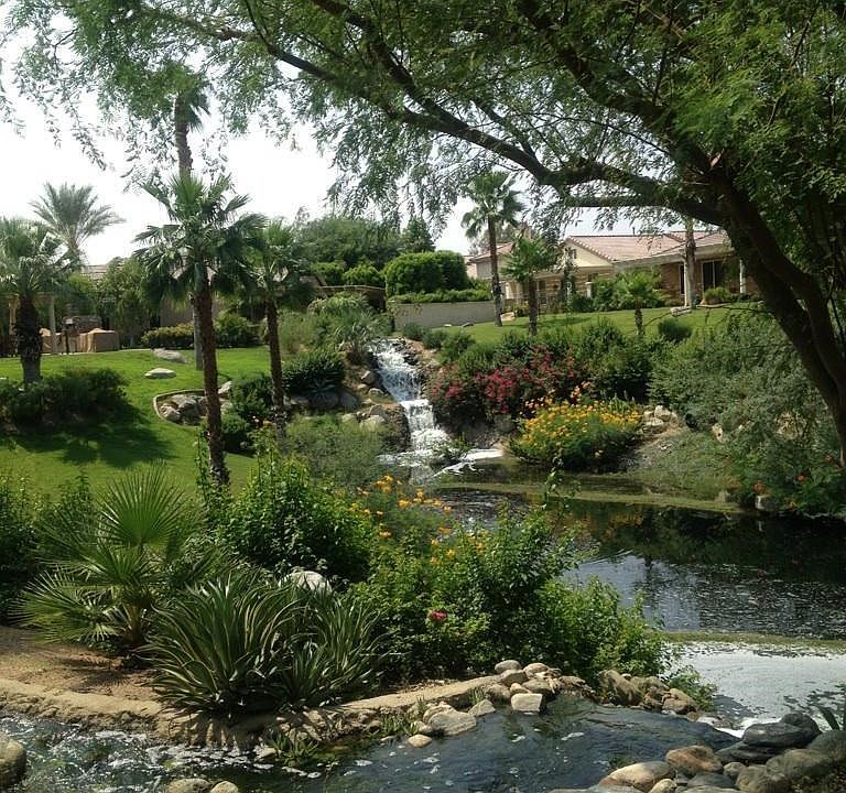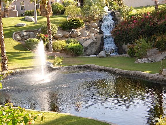 Highly upgraded elegant home is located on a 2 acre water feature with great views from the M.Br.,living room, dining room and kitchen. Open floor plan is designed for ease in entertainng. Detached casita entrance is off the formal gated front patio. RV garage is finished with air cond., lift and finished flooring in all garages 2 Car and Golf Cart.