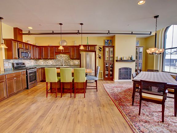 The expansive great room offers plenty of space to relax and host, while the dining area features a charming fireplace, adding warmth and character. The primary suite includes a private ensuite bath and a walk-in closet for ample storage. Step outside to the rooftop deck and take in breathtaking views of Lewiston's mills, the canal, and the scenic Androscoggin River.
