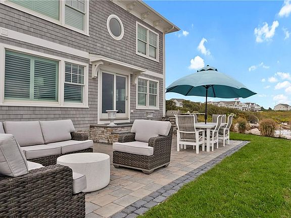 This spectacular property of refined elegance enjoys elevated and mesmerizing views overlooking Narragansett’s picturesque coastline, with unobstructed views of the Atlantic Ocean. The main level welcomes you with an open and inviting layout that blends contemporary functionality with enduring allure, and includes a gourmet kitchen, a culinary haven adorned with tile floors, quartz countertops, and custom made cabinetry; spacious dining area; living areas with tile floors, custom blinds, a cozy gas fireplace, and serene water views creating an ambiance of tranquility; mud/room study; and half bath. Venture upstairs to discover three bedrooms, each with private full bathrooms and ample closet space. The master en suite is a sanctuary of sophistication, showcasing a spacious walk-in closet, spa worthy master bath, shiplap walls, herringbone tile floors, and awe-inspiring ocean views. Retreat to the outdoor oasis, where a wrap-around stone patio and outdoor kitchen awaits. Revel in this idyllic setting, perfect for entertaining or savoring peaceful moments amidst a captivating coastal backdrop. Nestled at the end of a cul-de-sac, this exceptional property provides direct beach access, allowing you to immerse yourself fully in the coveted coastal lifestyle. Embrace this rare opportunity to make this property your own and enjoy its array of amenities and breathtaking natural surroundings.