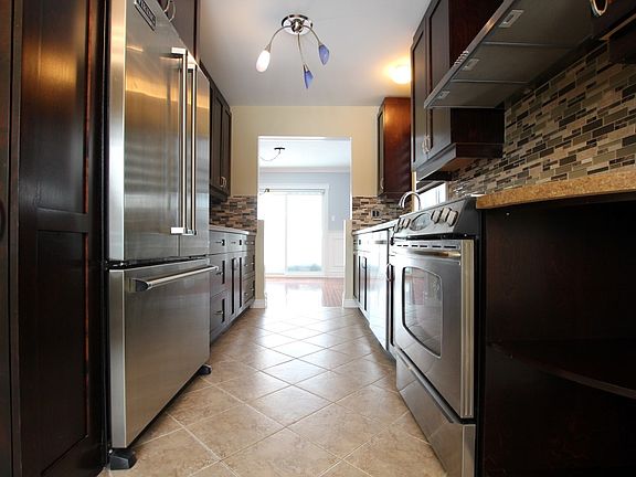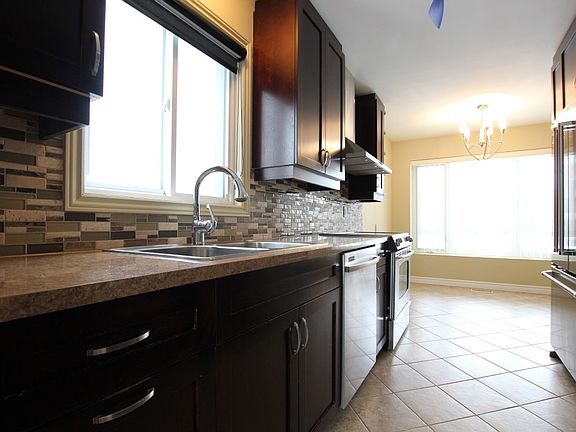 Stainless steel appliancesReal wood burning fireplaceLarge yardFinished basementCeramic tile flooringAttractive countertopsModern dark brown cabinets