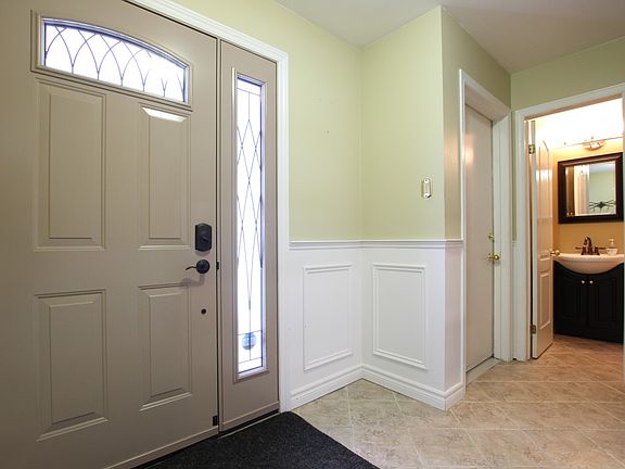 Entrance foyer and additional main floor powder room both have ceramic tiles flooring.