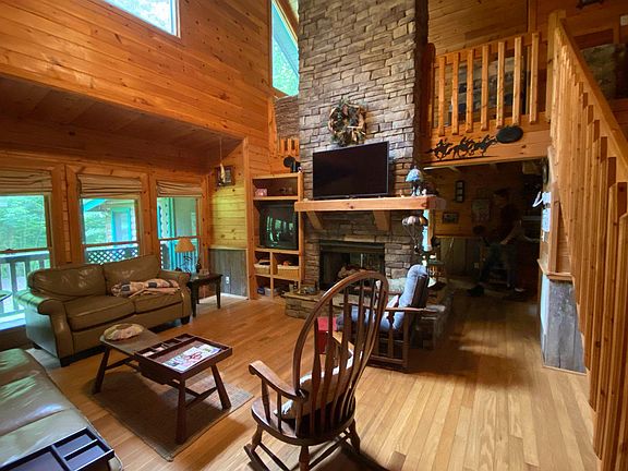 Make the escape to this cozy 3 bedroom, 2 bath cabin on rushing creek featuring a spacious screened porch as well as a wrap around porch, deck and deck on the creek. If you're looking for peace, just listen to the roaring creek and relax. Spacious master on main, dining area and great room with soaring rock gas fireplace the is see through to dining area. Two large bedrooms up with a full bath and loft. Would make a great rental!