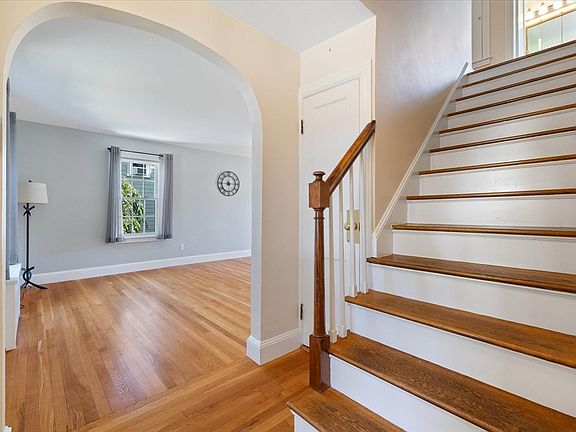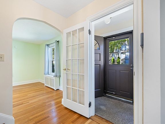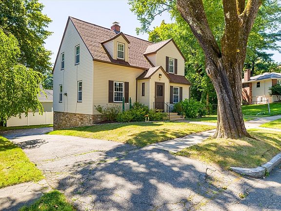 Welcome home to this charming, completely move-in ready Cape brimming with updates. Enter inside through a lovely French door into the spacious living room, where newly refinished hardwood floors & a cozy fireplace set the tone. A separate dining room flows seamlessly into the updated kitchen, featuring stone countertops, new tiled backsplash, newer appliances & a large pantry closet for storage. Just off the kitchen, you’ll find an updated 1/2 bath & an enclosed sunroom - the perfect spot to relax. Upstairs, the gleaming hardwoods continue into the oversized primary bedroom & 2 additional spacious guest rooms, along with a full bath. Recent improvements include a newer roof, new water heater, solar panels, updated windows & fresh paint throughout, giving peace of mind. Outside enjoy an adorable yard ideal for gardening or play, plus ample parking & a one-car garage. Nestled in a quiet neighborhood yet with a great central location, this home is the definition of charm.