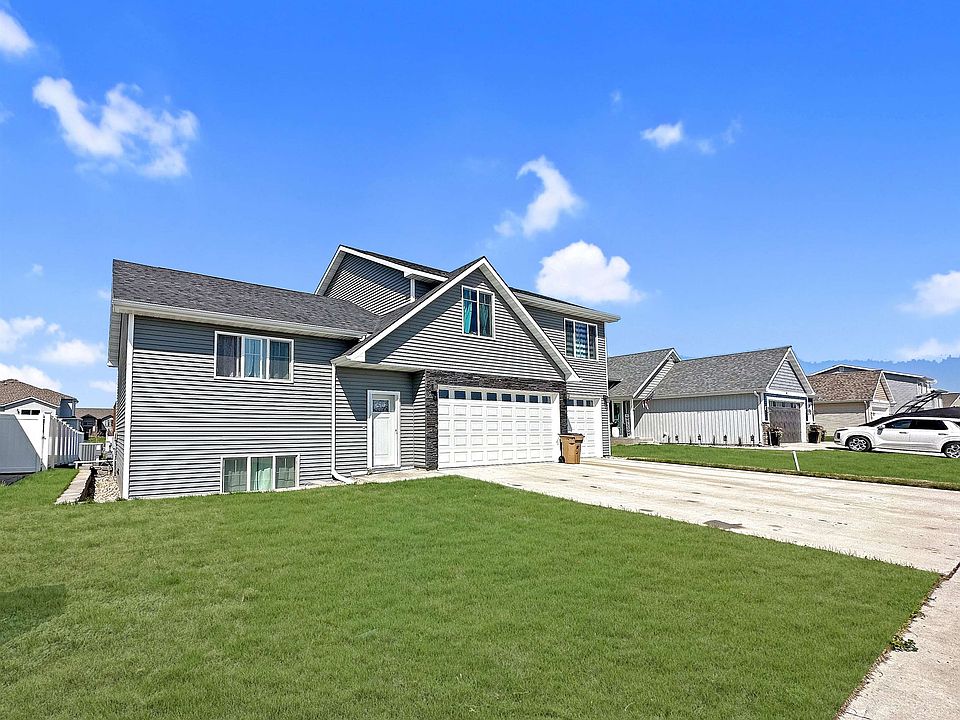 A gourmet kitchen and a huge yard! This lovely 4-bedroom, 3-bathroom Split level home offers an array of upgrades. Step from the Welcome mat into an interior embrace that includes an open floor plan, stylish lighting, neutral decor, and a fireplace. The kitchen is a well-presented dish of quartz counters, island, and pantry. The U-shape configuration maximizes roominess and accommodates multiple cooks (or visitors). The serene primary bedroom includes a walk-in closet and a private bath with a walk-in tile shower. The other three bedrooms, distributed on multiple levels for privacy, are unique and ready for styling. The large laundry room is on the upper floor to make easy access for your everyday laundry. There is also a nook which is perfect for your home office or quiet reading space. The finished basement, conveniently outfitted with a full bathroom, is a bonus of attractive flexibility. The driveway, with ample accommodation for visiting vehicles, leads to an attached three-car garage that is insulated and heated for the cold ND winters. The home has a massive backyard and is surrounded by walking paths that lead to the neighborhood park. Don’t let this one get away! *Some pictures have been digitally altered.