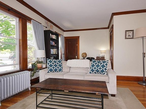 Light and bright six room condominium on the second floor of a two-family home offers an abundance of living space in a convenient location on a quiet tree-lined street near Cambridge. The living room features a brick fireplace, hardwood floors and a French door the leads to the sunroom. The dining room has a lovely built-in china cabinet and the updated eat-in kitchen has stainless steel appliances, granite countertops, recessed lighting, a convenient pantry and opens up onto a balcony that overlooks the greenery of the back yard. The spacious bedrooms both have hardwood floors and are painted in today's neutral and calming designer colors. The window filled sunroom can be used as a playroom, office or guest space and is currently being used as a guest room for out of town visitors. Additional features include lots of natural wood molding and trim, updated windows, and walk up attic with tremendous potential for expansion. Easy access to shops, restaurants and public transportation.