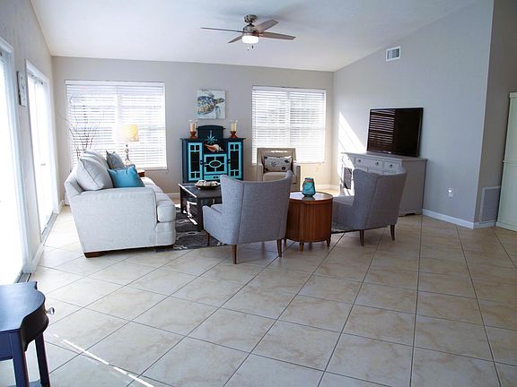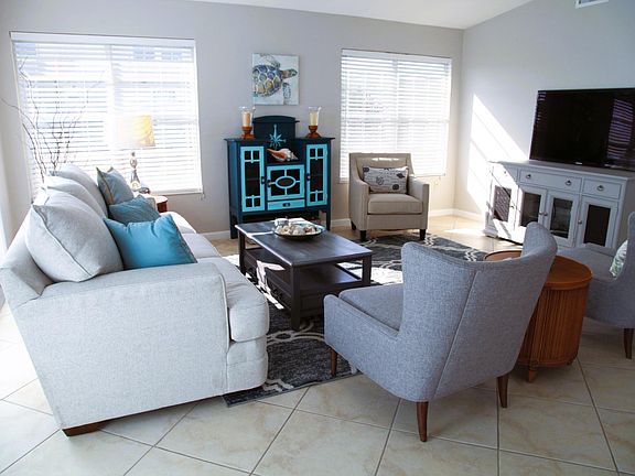 The stylish and sophisticated coastal-themed interior of this home is a perfect reflection of its seaside surroundings. The decor features a soothing color palette of cool blues and creams, providing a serene and relaxing atmosphere. The spacious and open living area boasts comfortable and upscale furnishings, making it the ideal space for relaxation and socializing.