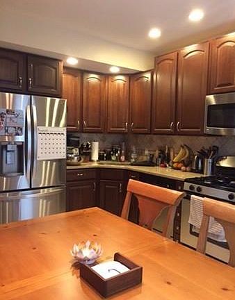 Recently renovated, this first floor unit is bright and airy with gleaming hardwood floors. The eat-in kitchen has been updated with cherry cabinets, granite counter-tops and SS appliances. New tiled floors flow from the kitchen into the bathroom. There is plenty of extra storage in the basement where you will find a hook up for washer and dryer. This unit has a cute bricked patio out back and 2 car tandem off street parking. Convenient to the beach, restaurants and the Swampscott commuter rail. Absolutely NO DOGS and NO SMOKING. Good references and credit required.