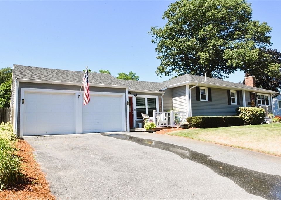 LOCATION! LOCATION! Turnkey 3 bedroom 1.5 bath hip roof Ranch offers a comfortable open floorplan. The nicely updated kitchen with granite countertops, stainless steel appliances, and tiled backsplash flows effortlessly into an open dining area and fireplaced living room. A center hall connects the primary and 2 additional bedrooms and a full tiled bath. Fully finished lower level provides a spacious family/media room, a home office and half bath. Numerous amenities and updates include hardwood floors, central air, a large 2 bay garage with attached 3 season room, newer siding, roof, windows, fence, and heating/cooling systems. A beautiful backyard with sizeable patio, garden area and inground pool completes this special property. Enjoy easy one-level living with quick access to beaches, parks, MBTA and Rt. 128. OPEN HOUSES: THURS 5-6:30 & SAT & SUN 12-2.