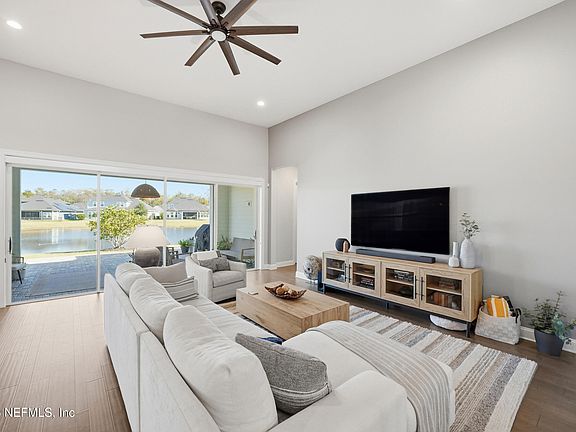 OPEN HOUSE SAT 11-1 This 5 bed, 3.5 bath Toll Brothers Julington plan offers the perfect blend of luxury, comfort, and timeless design. A grand 2 story foyer welcomes you with water views from every angle. The heart of this incredible home is the expansive gourmet kitchen with a custom tile backsplash, beautiful porcelain apron front sink, walk in pantry and generous prep and gathering space. The private office retreat features stylish open shelving and there is wood flooring and plantation shutters throughout the home. The luxurious primary suite includes an incredible spa like walk in shower, dual vanities and an oversized closet with ample storage. A 4-panel slider system opens seamlessly to the extended lanai, complete with a motorized screen for effortless indoor/outdoor living overlooking serene water views. An impressive staircase leads to two additional bedrooms upstairs complemented by a huge bonus room. There's also a 3 car tandem garage w/workbench and built in storage. Shearwater is a family friendly community with a K-8 school on site, multiple parks including a zip line and dog park, miles of walking trails and a community garden. Community resort style lagoon and multi-lane lap pool, winding lazy river, and a 3 story water slide. There's a fitness lodge. And its premier location in St. Johns County has sought after top rated schools and easy access to beautiful beaches, shopping, and dining. Welcome to the Shearwater lifestyle!