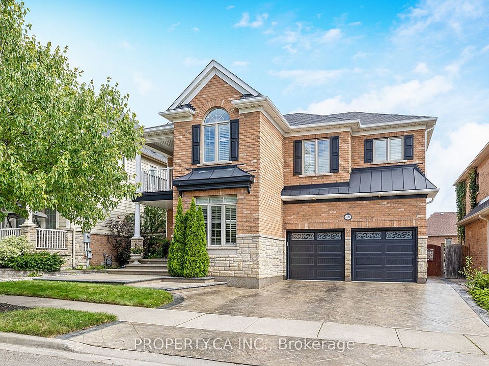 Heathwoods Hatfield Model is a rare offering in Miltons prestigious Scott neighbourhood Traditions community. Set on a wide 49-ft lot with a brick and stone façade, this home offers over 4,200 sq. ft. of finished living space across three levels, blending architectural elegance with modern finishes. With 6 bedrooms4 upstairs, 1 on the main, 1 in the basement this residence accommodates families in style.The main level features a formal living room/parlour, an elegant dining room with a servery, and a chefs kitchen with quartz counters, backsplash, and a large island with a breakfast bar. A secondary dining area with vaulted coffered ceilings opens to a private deck. The 18-ft family room impresses with a stone fireplace and expansive windows. A versatile main floor bedroom is ideal as an office, guest room, or playroom.Upstairs, four bedrooms each connect to a bathroom, including a Jack & Jill. The primary suite (13 x 20) showcases tray ceilings, walk-in closet, balcony, and a luxurious ensuite. An upper-level laundry adds convenience.The finished walkout basement serves as a nanny or in-law suite, with its own kitchen, living area, bedroom, bathroom, laundry, and private porch.Additional highlights: modern flooring throughout, curved staircase with sleek spindles, two laundry rooms, 5-car parking (double garage + driveway), interior/exterior pot lights, covered porch, and patterned concrete landscaping. There are NO rental items on the propertyIdeally located in Miltons Scott neighbourhood, steps from scenic Niagara Escarpment views, trails, parks, cafés, downtown Milton, Sherwood Community Centre, and top-rated schools.