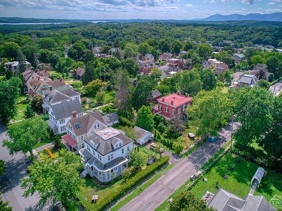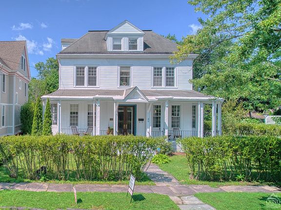 Welcome to the Amberleigh House, an exquisite colonial gem in the heart of Catskill, NY. Built in 1893 and meticulously renovated, this home blends historic charm with modern luxury. With a perfect mix of modern amenities and timeless elegance, this property offers a rare opportunity to own a piece of history without sacrificing comfort and luxury. Originally built in 1893, the recent renovation preserves the home's classic colonial architecture while incorporating state-of-the-art updates. Original hardwood floors, intricate moldings, and period-appropriate fixtures blend seamlessly with modern touches and conveniences. The expansive 3,200 sq. ft. interior with 10ft ceilings and plenty of natural light boasts seven generously sized bedrooms and three bathrooms.The heart of the home, the well-equipped kitchen, is featuring quartz countertops, custom cabinetry, and a large center island. It's perfect for both everyday meals and entertaining guests. Situated on a picturesque corner lot, the outdoor space is equally impressive. Enjoy relaxing on the spacious deck, hosting barbecues in the beautiful backyard, or taking a stroll downtown. The detached garage provides valuable storage.The location is unbeatable, in the heart of Catskill's East Side Historic District, steps away from local shops, restaurants, and across the street from Beattie Powers Place with stunning views of Olana and the Hudson River. Enjoy the tranquility of small-town living with easy access to outdoor activities such as hiking, fishing, and skiing in the nearby Catskill Mountains. It's just 30 minutes to Hunter and Windham Mountains, 11 minutes to Hudson Amtrak Station, and 2 hours from NYC.This historical colonial home offers a unique combination of historic charm and modern luxury, ready for you to add your personal touch and make it your own. Create lasting memories in a home that blends the best of the past and present.
