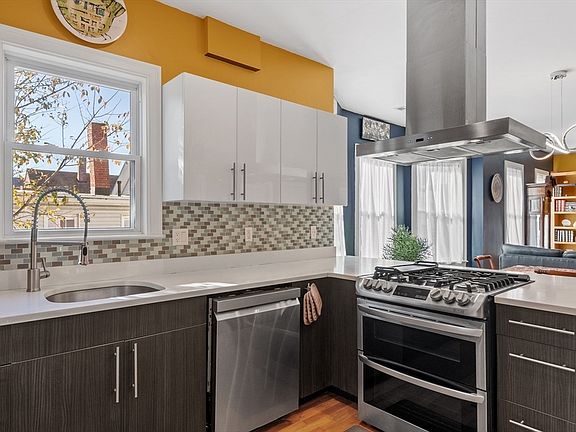 Unbeatable location and sophisticated style in the heart of Prospect Hill! This spacious 2-bedroom, 2-bathroom condo offers an open floor plan with hardwood floors, high ceilings, and an abundance of natural light through oversized windows. The updated kitchen features Ceasarstone quartz countertops, stainless steel appliances, and a brand-new dishwasher, while the LG double-oven and modern garbage disposal add convenience. Relax in the ensuite primary bath's jacuzzi tub with a waterfall showerhead or enjoy the private deck overlooking the backyard. Additional highlights include central air, in-unit laundry, deeded storage with cedar closet, and a cozy front porch.Nestled between Union Square and Gilman Square, you're steps from the Green Line, Bow Market, and top-tier dining. A popular dog park, vibrant local trails, and easy access to I-93 make this home perfect for city living with a touch of nature. Don't miss this Prospect Hill gem!