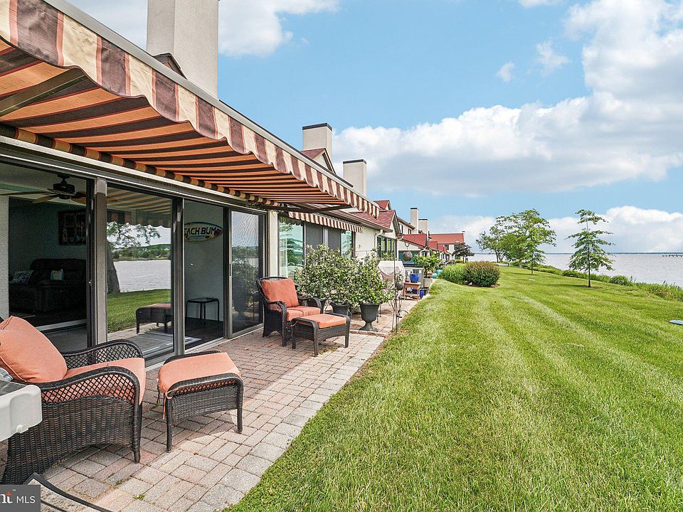 Now under contract with a home sale contingency - still available for showings and backup offers!! Welcome to Queens Landing, where resort-style living meets the comfort of home. This beautifully updated townhome offers 1,440 square feet of thoughtfully designed living space plus an open sunroom, adding approximately 160 additional square feet, creating a seamless and spacious floor plan ideal for everyday living and entertaining. Enjoy panoramic water views from every room - lake and fountain views from the kitchen and second bedroom, serene Macum Creek views from the living area, and expansive Chester River vistas from your sunroom and private patio. Wake up to breathtaking sunrises and wind down under the motorized awning as boats pass by in the distance. This two-bedroom home features dual en-suite baths, including a fully remodeled primary bathroom with a custom walk-in shower and sliding barn door. The kitchen is equipped with newer, beautiful soft-close cabinets, sleek countertops, modern appliances, and an extra pantry for added storage. Luxury vinyl plank flooring flows throughout the main level, while plush carpeting offers comfort upstairs. Additional highlights include a newer HVAC system, water heater, and fresh paint throughout. An expansive attic and a dedicated storage room provide plenty of space to keep your belongings organized and out of sight. The building exterior was rehabilitated in 2018, including new windows, and a 30-year architectural shingle roof was installed in 2021. All required annual inspections have been completed, ensuring peace of mind. Queens Landing offers unmatched community amenities including a waterfront pool, fitness center, clubhouse, pickleball and tennis courts, walking trails, and kayak launch areas—all just minutes from Route 50 and the Bay Bridge. This is your opportunity to own a turn-key waterfront lifestyle in a vibrant and well-maintained community. The seller is also offering a 30-foot boat slip at the Queens Landing Marina with dues paid until March of 2026 and is selling a 2019 Sportsman 28-foot center console boat (grey/white with twin 200 Yamaha engines), available separately upon request. It’s the perfect combination for any boating enthusiast; a true boater’s dream.