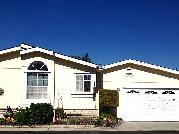 Back On The Market!! Feel Out Of Escrow!!! NEED OFFER ASAP!!! Located in a well maintained, age restricted (55+), privately owned, gated community built right in the middle of an orange grove. Clubhouse, billiards, swimming pool, spa, laundry room, beauty shop and many planned events that you may participate in if you wish. Water only costs residents $6.40 per month so you can keep your greenery green. Park pays for trash and sewer fees. This great home is located in a quite area of one of Orange County's most beautiful senior communities (Near Shopping centers, bus services). Dry wall ceiling and walls are featured throughout (open ceiling living, dining & kitchen), Windows let natural light shine throughout the home, with a brand new fireplace in the living room. Brand new wood flooring in living room, dining room and kitchen. Carpet in bedrooms and bathrooms. Light oak cabinetry in kitchen, with all appliances. Separate washer & dryer room. Has panty in kitchen with island with storage space. Master bedroom has a Jacuzzi tub. Brick skirting, beautiful landscaping throughout with one of the biggest back yards in the community. Has 2 car attached garage with built in shelves. 1 of 2 with Garage. Don't Miss this opportunity!!!