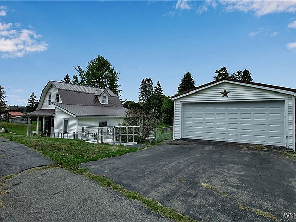 Charming 2-bedroom, 1.5-bath home on a spacious 0.83 acre lot in the heart of Wellsville, offering 1,176 sq ft of living space with a detached 2 car garage, ample parking, and a full, partially finished basement which opens to an outdoor patio and a fully fenced portion of the yard. Beyond the fenced area, the expansive yard is ideal for gardening, entertaining, or future expansion, while the convenient location within the Wellsville Central School District provides easy access to shopping, dining, and town amenities. The eat-in kitchen boasts a separate dining area and walks out to a large covered porch overlooking the yard. The home was converted from a 3 bedroom and can easily be converted back to a 3 bedroom home. Join us for an open house this Saturday, September 27 from 2pm to 4pm.