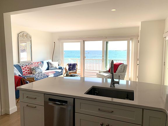 Beautifully renovated Beachfront 2 bedroom, 1 bath Condo on Private Magnolia Beach in Manchester-by-the-Sea. Open concept kitchen/living room area with wall of sliders opening to your private deck overlooking the beach. 2 bedrooms with queen beds plenty of closet and cabinet space.