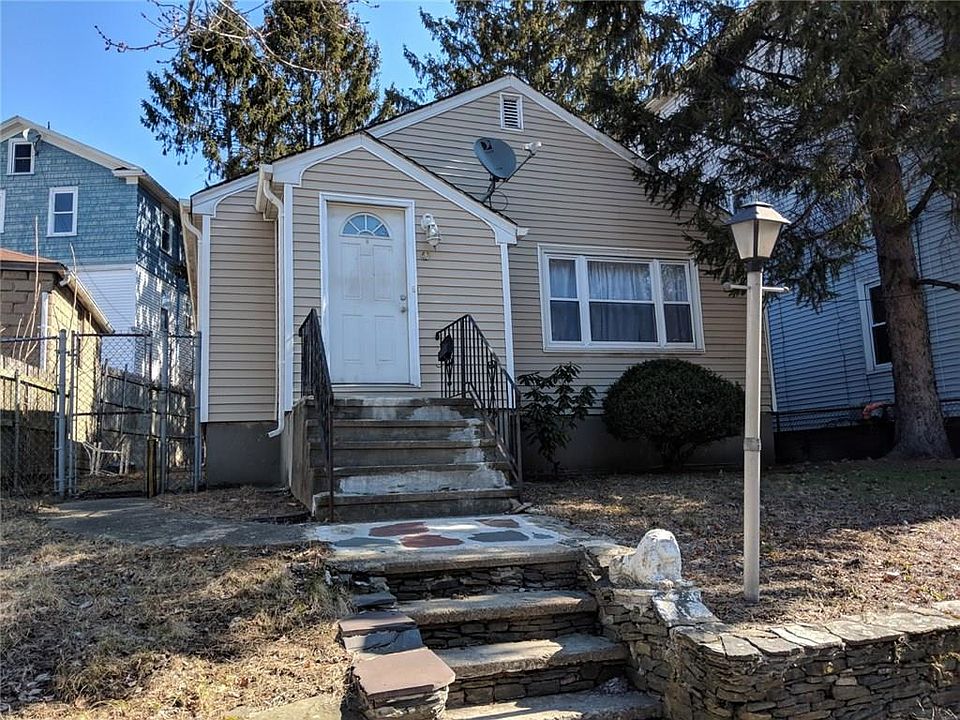 New roof will be installed prior to closing. Two bedroom 1 and half bath ranch with hardwood floors, kitchen with dining area, and lower rec room. Full bar for entertaining. Two car detached garage which offers off street parking on Ayrault street. Home has been freshly painted and has newer replacement windows and maintenance free vinyl siding. Fenced yard. Taxes reflect owner occupied home.