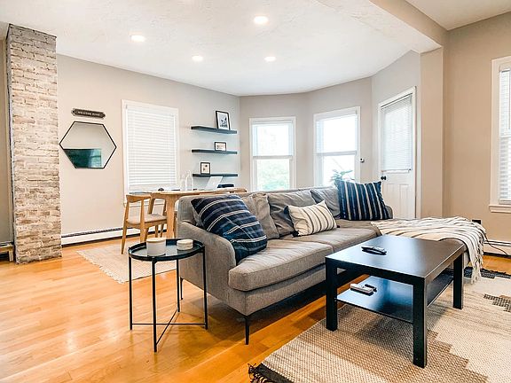 Beautifully renovated, front-facing 2-bedroom condo with ocean views. Offering 1,079 sq. ft. of natural light, high ceilings, and hardwood floors, this open-concept space features a modern kitchen with granite countertops, and updated appliances. The spacious living/dining area includes custom finishes, recessed lighting, and a floating entertainment center. Enjoy in-unit laundry, generous storage in the basement, and a king-sized primary bedroom with a custom walk-in closet. Step outside to your private front deck off of the living room. Perfect for relaxing or entertaining. Conveniently located just minutes to public transportation, downtown Boston, and beautiful Winthrop Beach, this condo combines the best of coastal living and city access! Available August 1st or September 1st. First Month, Security deposit, and 1-month brokerage fee due at lease signing 12 month lease