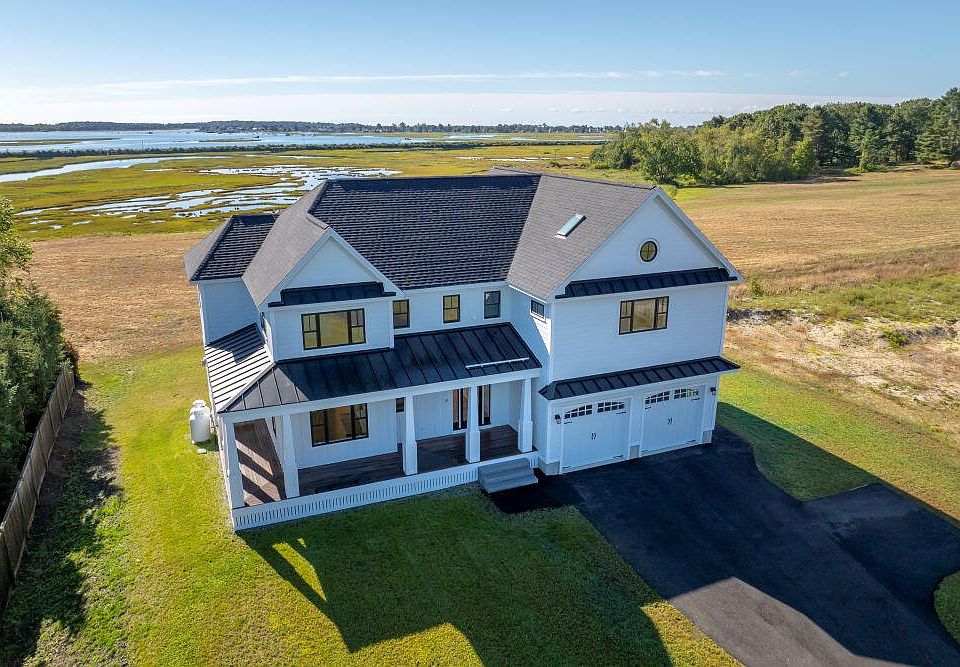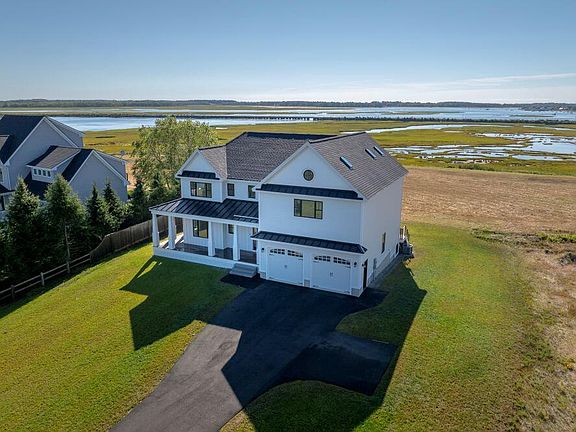 Beautiful new-build single-family home in a fantastic location with sweeping views of Pine Point and Prouts Neck. 4Bed/3.5Bath, premium quality construction. Wrap-around deck with hardwood ceilings. Large rear deck. Master suite with vaulted ceilings, sliding double doors to a cantilevered deck, skylights, large walk-thru closet, bathroom with vaulted ceilings and skylights, frameless glass, tiled shower, free-standing tub and dual vanities. Full en-suite bathroom to second Master.