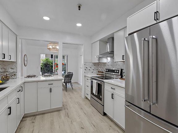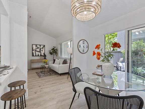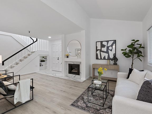 Newly Renovated End-Unit Townhome in Mountain Views Most Desired Community: Old Mill. The best in academics with Los Altos Schools (Covington ES - 9, Egan MS - 8, Los Altos HS - 9). A couple of blocks to San Antonio Center for every convenience you could need or want: grocery, gym, coffee, dining, Target, banking, movies, and more! Caltrain Station just a few blocks away. This 3BD/2.5BA with 1,526 sf residence offers the perfect blend of modern design, light-filled interiors. The Chef's Kitchen opens to the dining area & showcases quartz countertops, shaker cabinetry, SS appliances, designer backsplash, built-in pantry storage, & a breakfast bar for casual meals. A spacious living area connects seamlessly to the private backyard with a contemporary paver patio, eco-friendly turf, climbing wisteria, and scented jasmine - ideal for relaxing or entertaining. Upstairs, the expansive primary suite features double-door entry, a large bedroom, and a spa-inspired bath w/ dual sinks, an LED mirror, and a walk-in shower. Two guest bedrooms enjoy ample closet space, shared balcony access, and a renovated hallway bath. Additional highlights include a finished 2-car garage, newer furnace & A/C. Enjoy resort-style amenities - 2 pools, clubhouse, garden walkways.