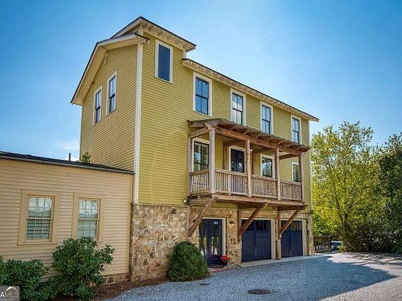 Lew Oliver designed townhome in the heart of the Roswell Historic Mill District! Beautifully crafted and freshly painted with soaring ceilings, hardwood floors, and windows on all 4 sides! True chef's kitchen with stainless steel appliances, pull-out shelving, and custom island dining! Family room with fireplace and 2 covered balconies offer multiple entertaining possibilities on this floor alone! Huge, wrap-around private patio on the ground floor offers even more! Large, light-filled primary bedroom has 4 windows and a walk-in closet! Fabulous primary bath features 2 vanities, oversized shower, and large soaking tub! Secondary bedrooms both have ensuite baths as well! Spacious elevator serves all 3 floors! New roof was just installed! With its entrance on Mill Street, this small, private 4-townhome complex is literally down the street from the Roswell Mill, the Covered Bridge, and the Vickery Creek Park Trail entrance. Souper Jenny, Moxie Burger, The Mill Restaurant, and Roswell Square are all in the immediate vicinity, with Canton Street, City Hall, and the upcoming new Hill Street development just a short walk away.