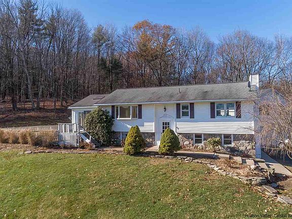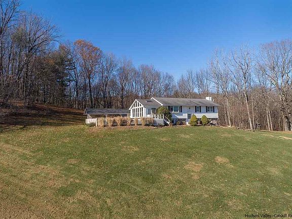 Spacious raised ranch with in ground pool perched on a hillside overlooking views of the Shawangunk Mountain Range. Custom kitchen with granite counters, large family room with stone fireplace and a wonderful four season sun room over looking the pool and views. The pool also has a kitchen and bathroom. The property also includes a legal two bedroom apartment over the garage currently renting on a month to month basis for $900 per month plus utilities. Recent updates include a well pump and lines to the leach field. It would make ideal full time or weekend residence, and is located close Minnewaska State Park, Sam's Point, Vernooy State Forest and the up and coming Village of Ellenville with Shadow Land Theater and restaurants.