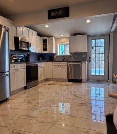 Welcome to this Beautifully Renovated 2 Bedroom 2 Full Bath Ranch on an Open, Level Half Acre. Completely Redone in 2019. Spacious and Airy with Open Concept Living Rm and Kitchen with Vaulted Ceilings Bamboo Hardwood Floors in Living Room and Main Bedroom Renovations Include - New Roof, Vinyl Siding, Electrical - Recessed Lighting, Marble and Tile Floors, New Kitchen and 2 New Bathrooms. Spacious Half Acre Level yard - Entertain or Play for Hours. Move in Ready - This Home will not last!