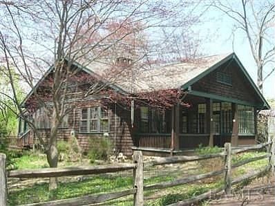 Authentic Stickley-built Arts and Crafts home-on market first time in 28 years. Beautifully sited on large corner landscaped lot with hydrangea, lilac, day lilies, ornamental grasses, and evergreens. Interior space is designed with an open floor plan and convenient one level living. Aspects of updated kitchen, lighting fixtures and hardware relate as design elements. Recessed porches, entrance way, large Ipe wood deck and pergola add visual interest to this Craftsman home. Original maple flooring, and cypress wood trim.