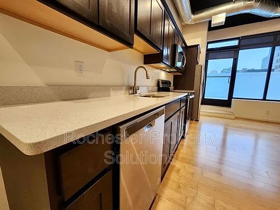 Beautifully updated industrial-style unit in the heart of Downtown Rochester! This modern space features sleek finishes throughout, including stainless steel appliances and the convenience of an in-unit washer and dryer. Enjoy city living at its best with gyms, restaurants, entertainment, and top attractions just steps from your door.