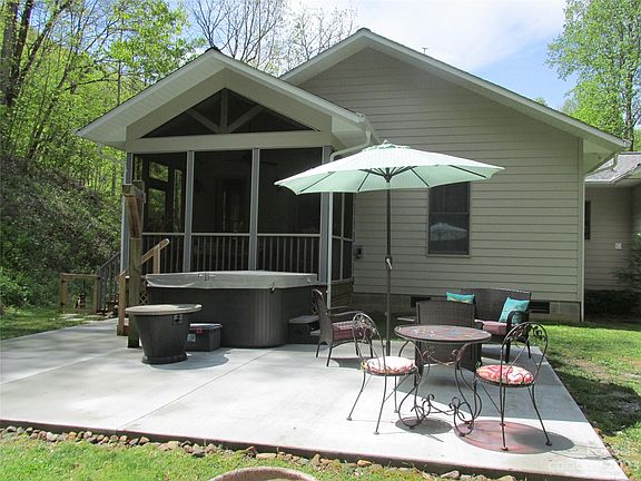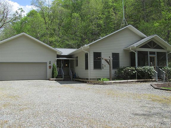 Great one level 3/2 home with hardiboard siding surrounded by woods with complete privacy. A hammock and swing await you before entering the bright and airy ranch style home where there is a screen porch on the front and the back. Custom hickory cabinets in the mudroom have pullout drawers to make your life easy. Gas fireplace in the living room for those cool cozy nights. A hot tub and patio in the backyard for soaking and entertaining. The two-car attached garage has a utility sink and a door to the backyard. The dining area is situated where you can appreciate all the local nature. The home is beautifully appointed with tile back splashes, forest wallpaper and artisan wood shelving. The backyard has a garden shed, greenhouse, dog kennel, trails cut by the owner and a large flat area to play. The creek can be heard while sitting on the porches or relaxing in the hot tub and reached easily for excellent trout fishing. Great for fulltime family living or an excellent vacation rental!