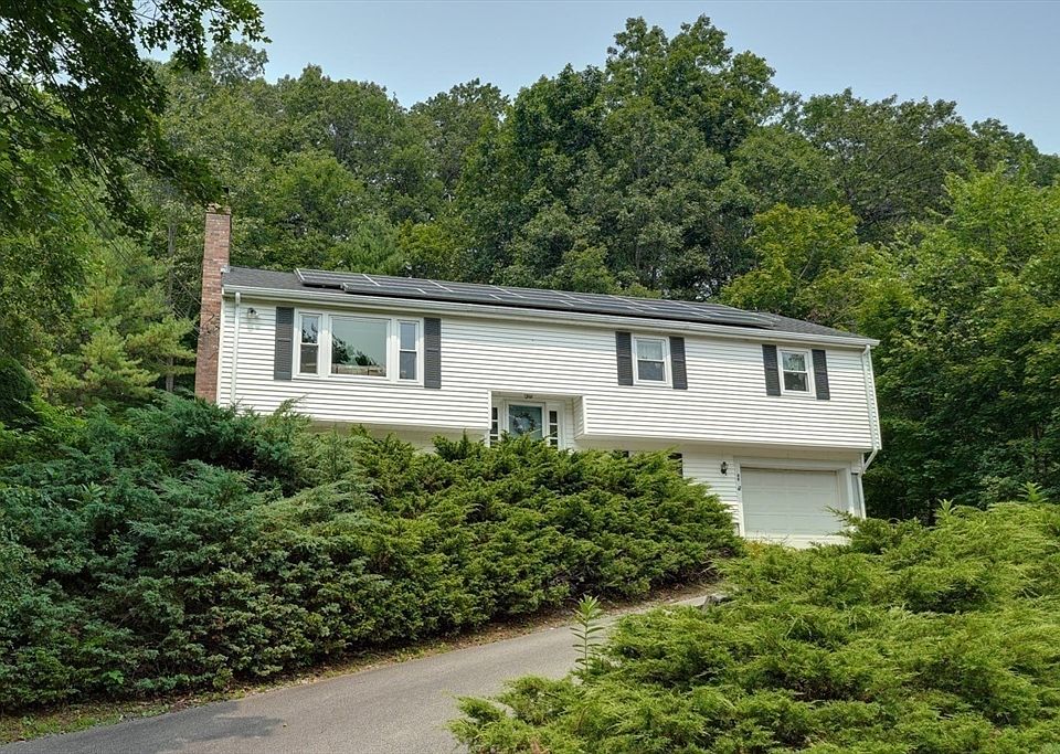 Fantastic split level home set nicely on a private hillside! This energy efficient home features vinyl siding, replacement windows (9+- years), roof (3+- years), central air (10+-years) and positive producing solar panels. The main level features an open floor plan connecting the fireplaced living room to the dining room and kitchen all featuring hardwood floors. 3 generous sized bedrooms including a primary with a half bath and an updated main bathroom with an incredible walk-in bath finish the main level. The completely finished lower level boasts a large family room, bonus room with lots of options, an office area and an additional full bath! Head outdoors and relax on the deck, enjoy the yard and sit by the pool! Seasonal views of the Assabet River complete the package.