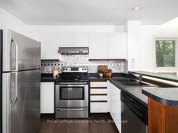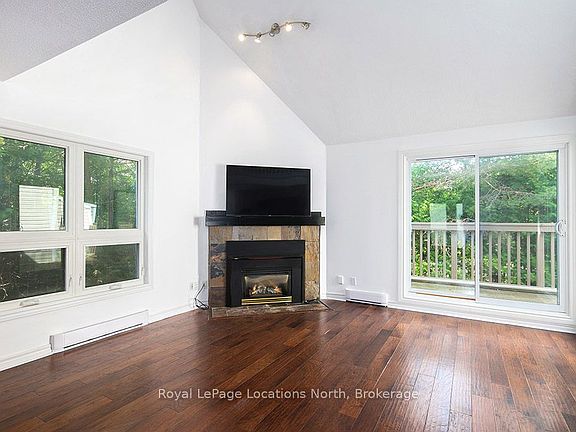 This great end unit townhouse features an open concept kitchen, dining and living space with stunning vaulted ceilings with sky light allow for lots of natural light. Completing the main floor living space are the gas fireplace and large balcony with a seating area for relaxing or entertaining. The main floor also includes one excellent sized bedroom, one full bathroom and laundry. The loft style primary bedroom and ensuite boasts plenty of room and storage. All this just minutes to downtown Collingwood, the base of Blue Mountain and the many local amenities. Book your showing today..