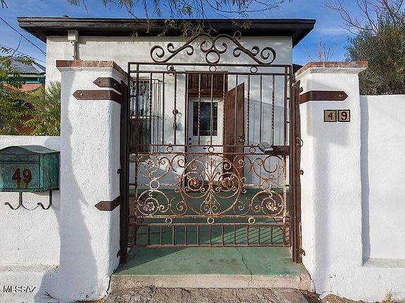 Absolutely gorgeous Spanish Colonial Revival adobe home in Barrio Libre, built circa 1896. (Earliest recorded map is 1901, so likely the home was built between 1896 and 1901) Property is the very definition of ''rare treasure'' with thick adobe walls, spacious rooms, soaring ceilings, a wonderful eclectic collection of antique doors & fixtures and modern amenities. Mini-splits heating & cooling. Enclosed porch for al fresco dining, and yards have mature landscaping and are walled front, side, and back for ultimate privacy. Includes a lovely full guesthouse, built in 2007, with an Asian flair, glass and exposed beams to which tall corrugated driveway gate provides ease of private access. Offstreet parking is the deep driveway east of the house. NOTE: cameras recording audio and vide
