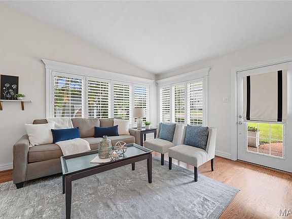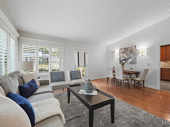 Elegant four-bedroom, 2.5-bath home in Clayton Road Park in the heart of Ladue offering approximately 1,850 square feet of living space on three levels. The property features a level wooded lot with a concrete driveway, one-car garage, and a white-washed brick exterior that complements the home’s inviting curb appeal. Inside, the updated eat-in kitchen includes granite countertops, cherry-style cabinetry, tile flooring, and stainless steel appliances, while hardwood floors extend through the living and dining rooms and all four upstairs bedrooms, with the living room highlighted by an inviting gas fireplace. The walkout lower level provides additional living space with a remodeled full bath featuring a tiled shower and pedestal vanity, along with a finished family room and playroom, plus updated window treatments throughout. Ideally located with quick access to highways, the airport, and downtown Clayton, the home is also within walking distance of shopping, dining, all three Ladue public schools, with several private schools nearby—offering a rare combination of size, condition, and location. Move-in ready-Welcome home.
