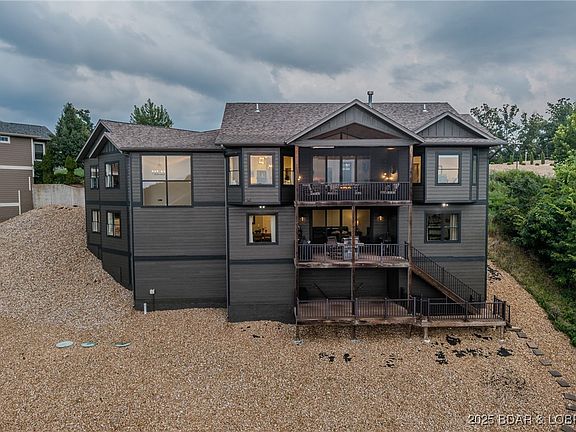 Sophisticated, spacious and stylish is what you get at 49 Weathervane Ct in Camdenton. This home shows like a GEM! Just under 4800sqft and offering 6 bedrooms, 3 beautifully updated full bathrooms and main level living fit for a king! As soon as you walk through the front door you are greeted with vaulted ceilings, warm wood flooring, recessed lighting, stucco fireplace with gas insert, huge open living/kitchen/dining areas and tons of windows pouring in natural light and a view that will knock your socks off! Kitchen that would make any chef jealous with center island with sink, quartz counter tops, stainless appliances and gorgeous tile backsplash! Screened in upper deck with insane valley/lake views! Large master suite with his/hers walk in closets and attached master bath with soaking tub, huge walk-in tiled shower and double vanity sinks! 2 more bedrooms, 2 dining areas, walk in pantry and laundry complete the main floor! Lower level offers huge open family room with wet bar, bonus room, and 3 more bedrooms, full bath and 2nd lower-level deck. 12x32 slip is included, access to community pool and clubhouse! Over 80k in recent improvements & now will be a fully gated community!