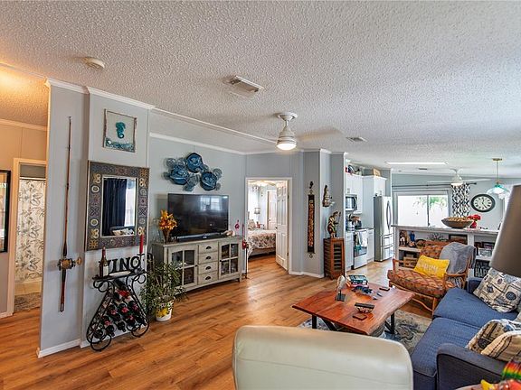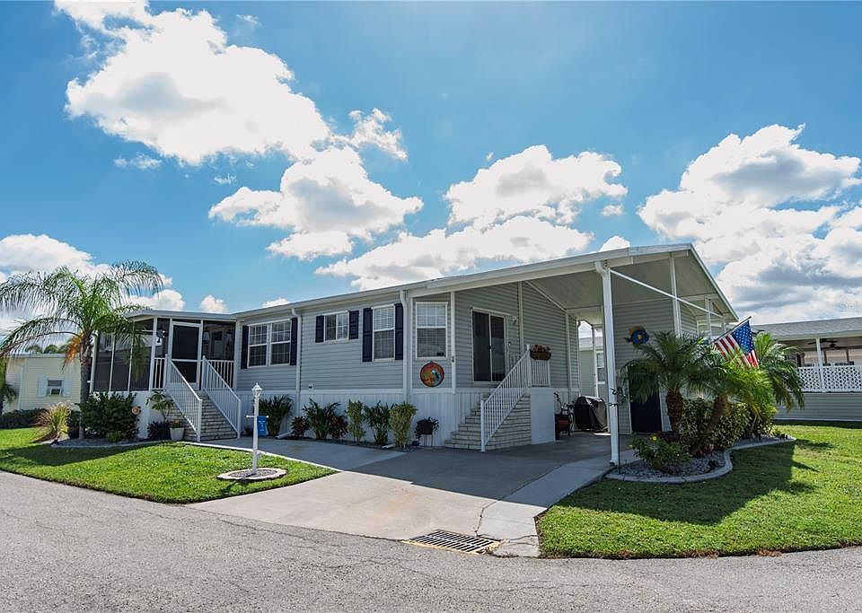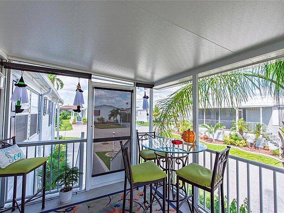 Discover this adorable partially furnished 3-bedroom, 2-bathroom corner lot home in the welcoming 55+ community of Windmill Village, offering 1,188 square feet of comfortable living space perfect for full-time enjoyment. The open-concept layout features crown molding, luxury vinyl flooring installed in 2021, and a completely repainted interior with muted colors from September 2023. The eat-in kitchen boasts ample cabinets, granite counters, and new cabinets from a January 2022 remodel, with a convenient laundry room off the kitchen including a pantry. Both the primary bathroom and guest bathroom are updated with granite counters and new cabinets in January 2022. Privacy film on sliders leads to a second staircase, that leads you to a carport, and storage shed. The 13x9 front porch is screened in with no-see-um screens and privacy shades for full-time enjoyment all updated in January 2023. Numerous recent updates enhance this gem, including a new roof in December 2022, AC system in June 2023, fresh landscaping in June 2024, a repaired landscape drip system on the water meter in June 2025, and a water heater also from June 2025—ensuring modern efficiency and peace of mind. This home offers both style and practicality in a peaceful and welcoming community. This active lifestyle community features two private marinas which are free on a first-come first-serve basis, boat ramp, trailer storage yard, horseshoe pits, shuffleboard, bocce ball, billiards, indoor pickleball, a large community center and a many clubs catering to your hobby interests. The new Pavilion by the heated pool offers an area for holding gatherings. Punta Gorda was voted “#1 Best Small Place to Live” by Money Magazine and Forbes. Purchase price does not include $18,285 for Buy-In Share and Bond, which is refunded when you sell. Schedule your showing today to see this beautiful home! This is your paradise!